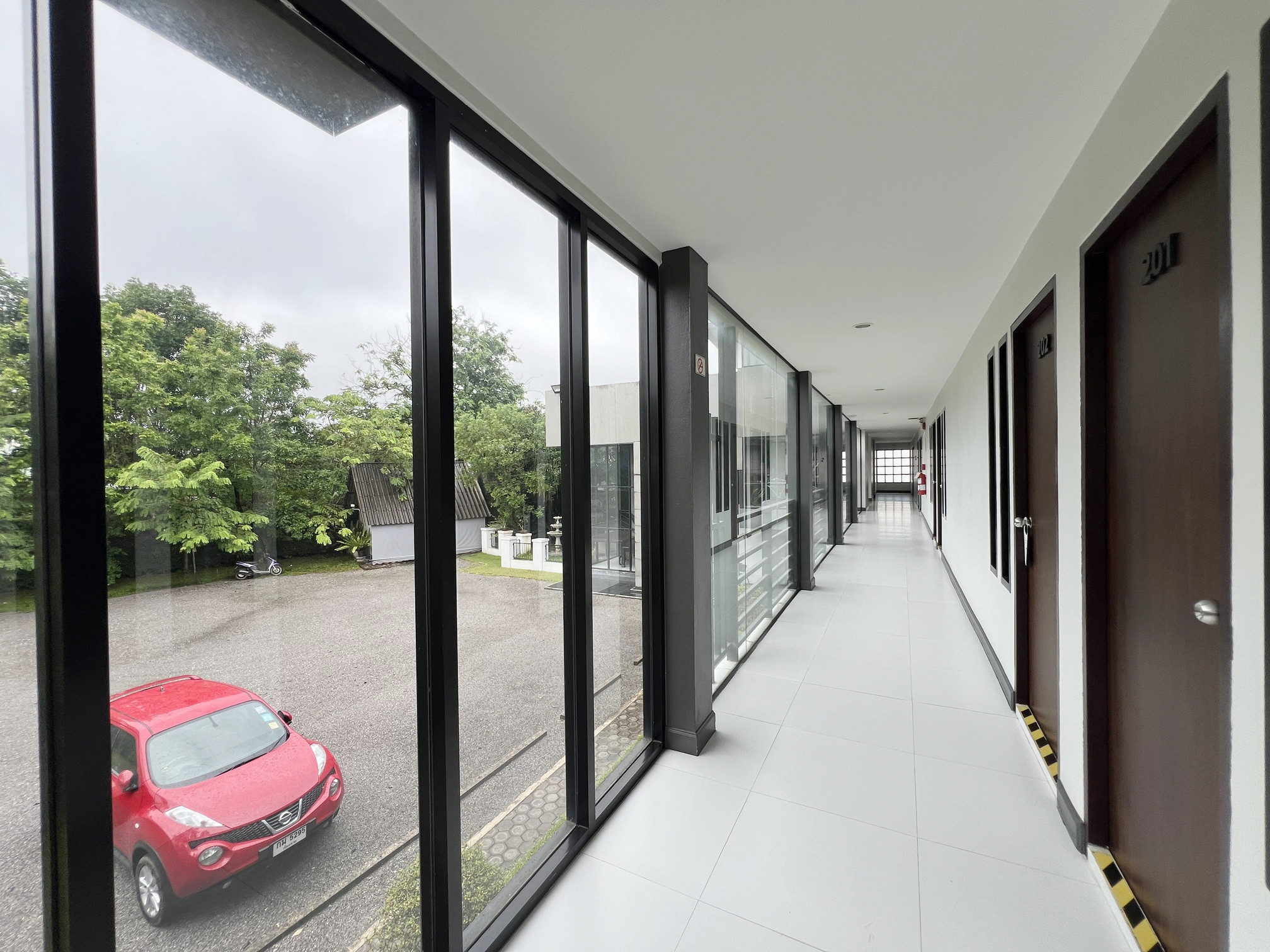 • ห้องพักจำนวน 9 ห้อง (ห้องละ ~30 ตร.ม. ทุกห้องมีห้องน้ำในตัวและมีระเบียง)
