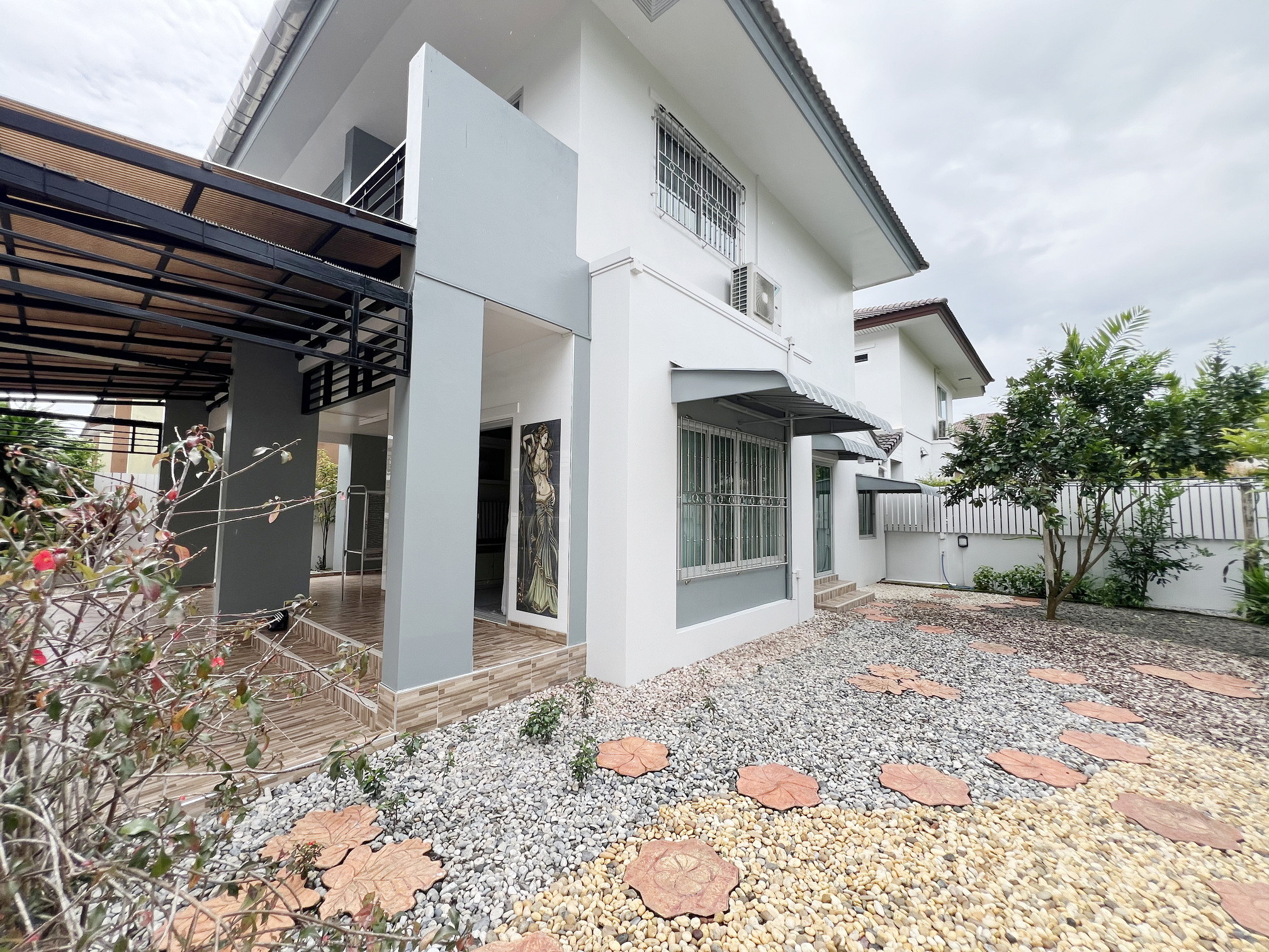 มีสนามรอบบ้านโรยด้วยหินสวยงาม 🌿