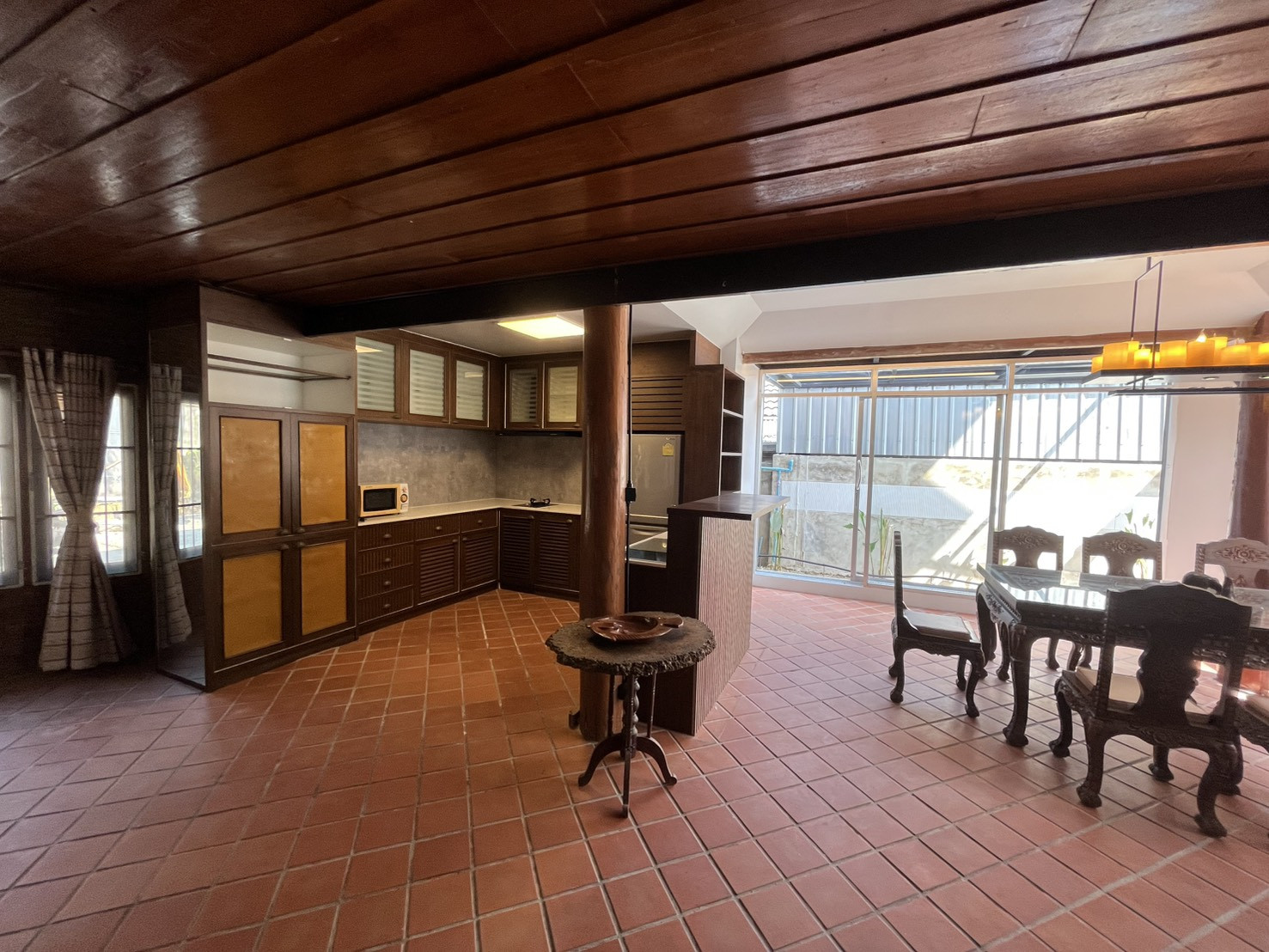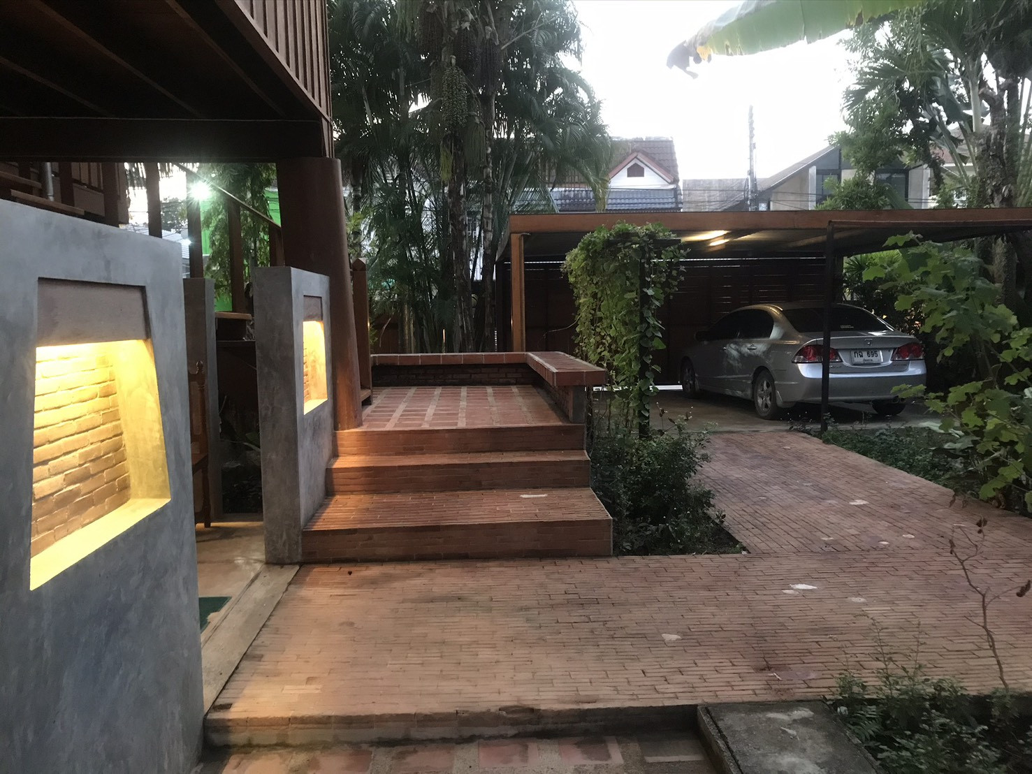 บ้านไม้เรือนไทยบรรยากาศอบอุ่น ตั้งอยู่ใจกลางเมืองเชียงราย มีลานกว้างขนาดใหญ่พร้อมห้องครัว เหมาะสำหรับครอบครัวขนาดกลางหรือขนาดใหญ่ ผู้ที่ต้องการบ้านสไตล์ไทยแท้ พร้อมพื้นที่ใช้สอยครบถ้วนในทำเลเมืองที่เดินทางสะดวก