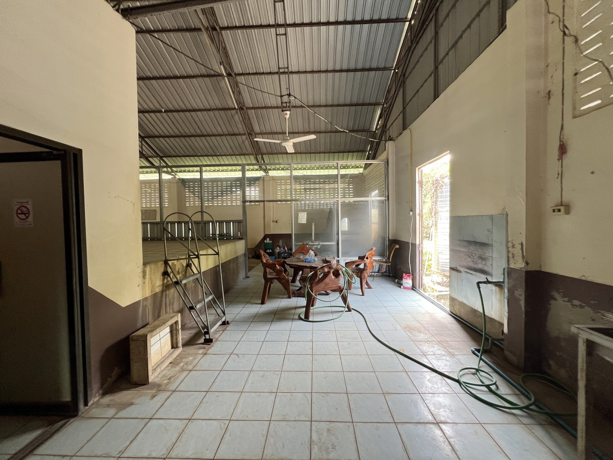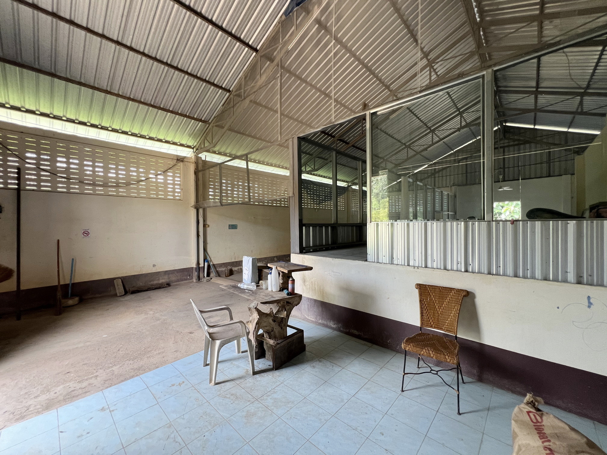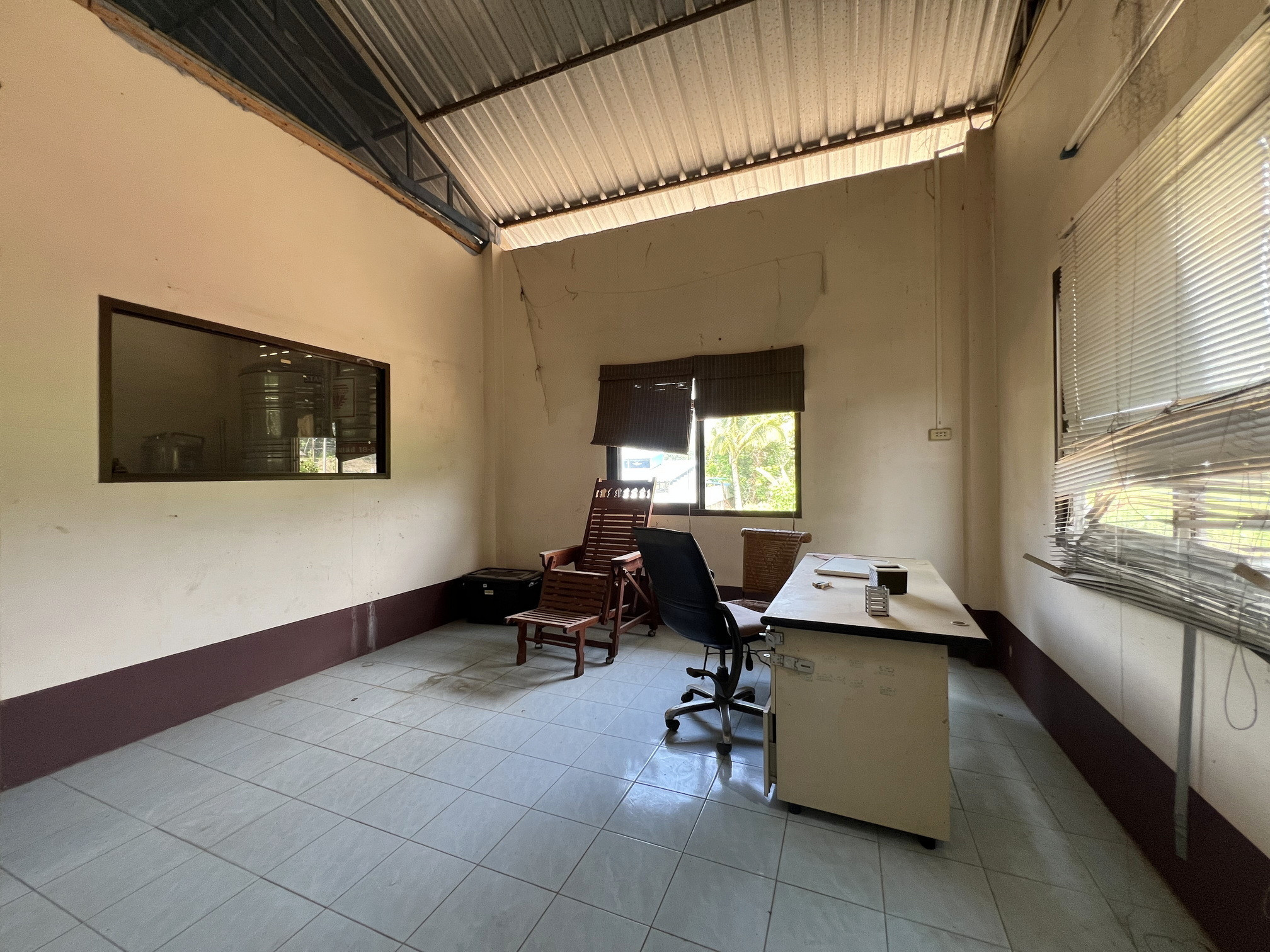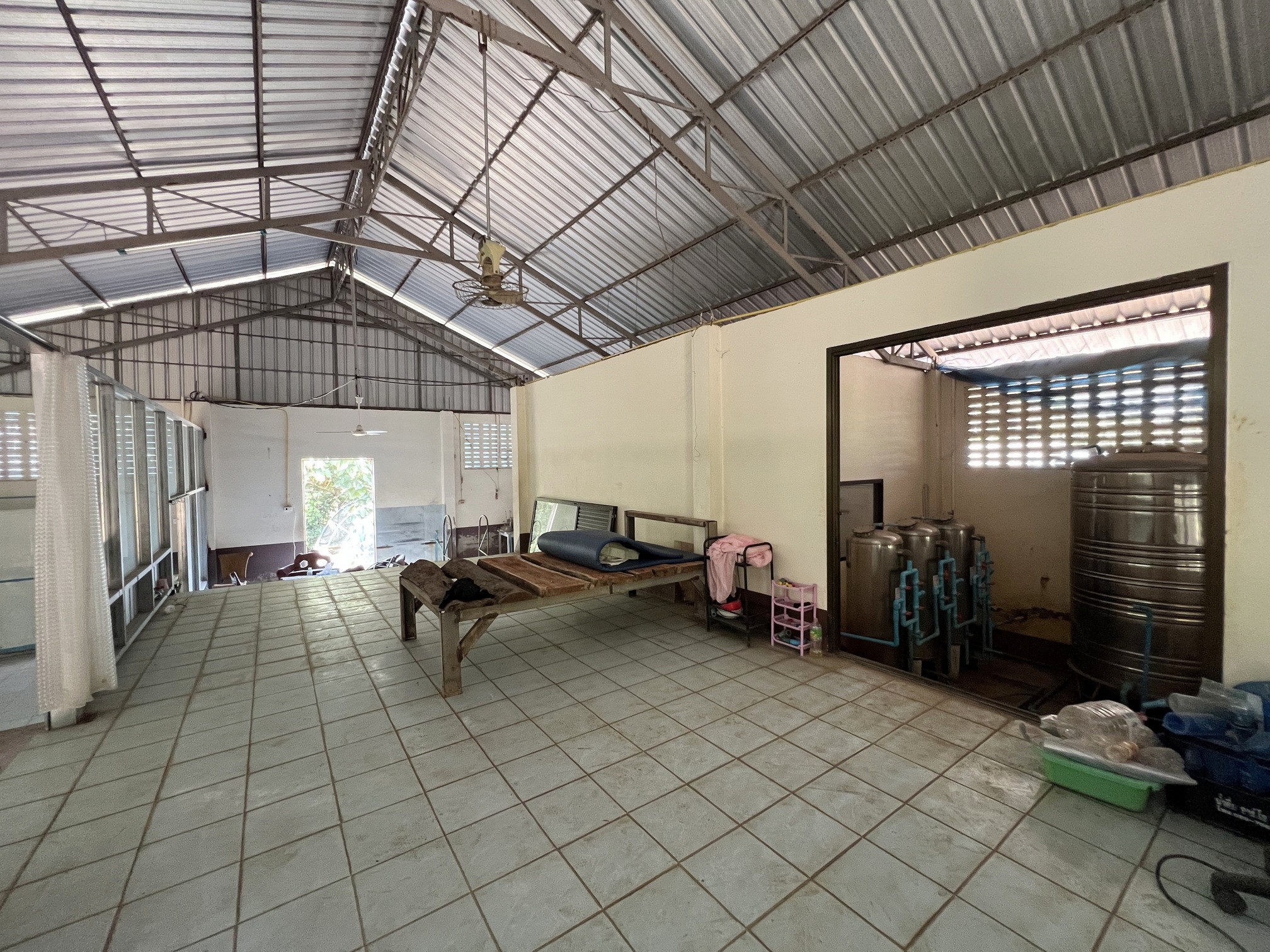 ภายในที่ดินมีอาคารโครงสร้างแข็งแรง เดิมใช้เป็นโรงงานผลิตน้ำดื่มขนาดใหญ่ มีระบบน้ำ ไฟฟ้า และระบบเดินท่อครบถ้วน